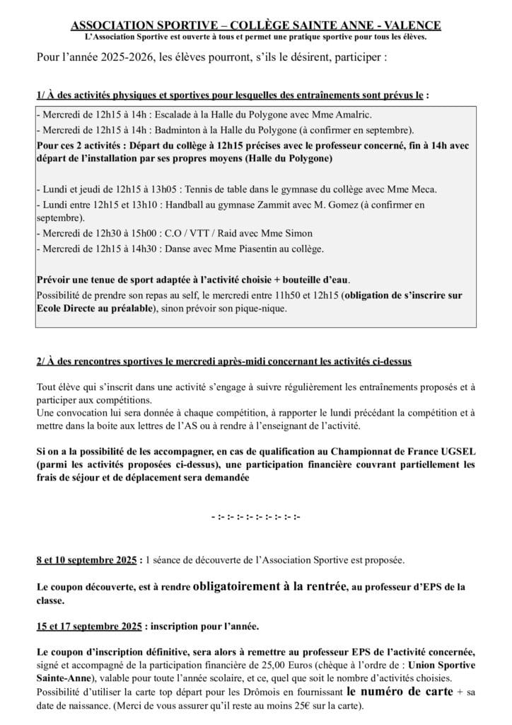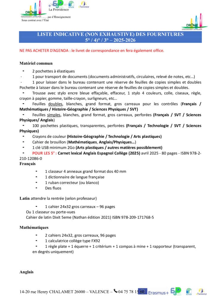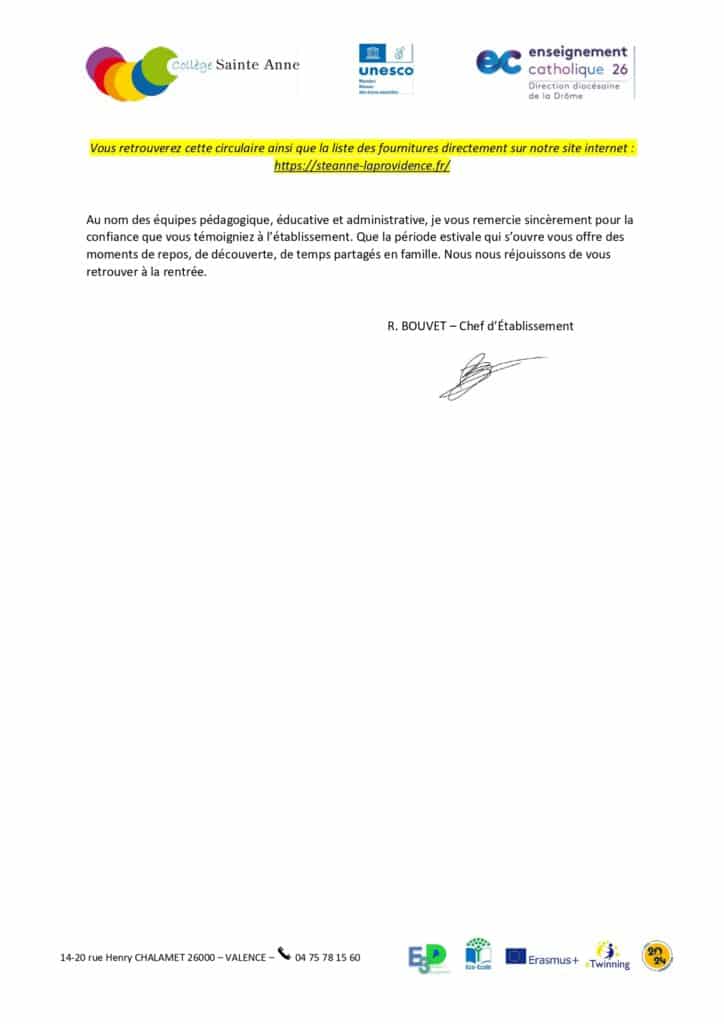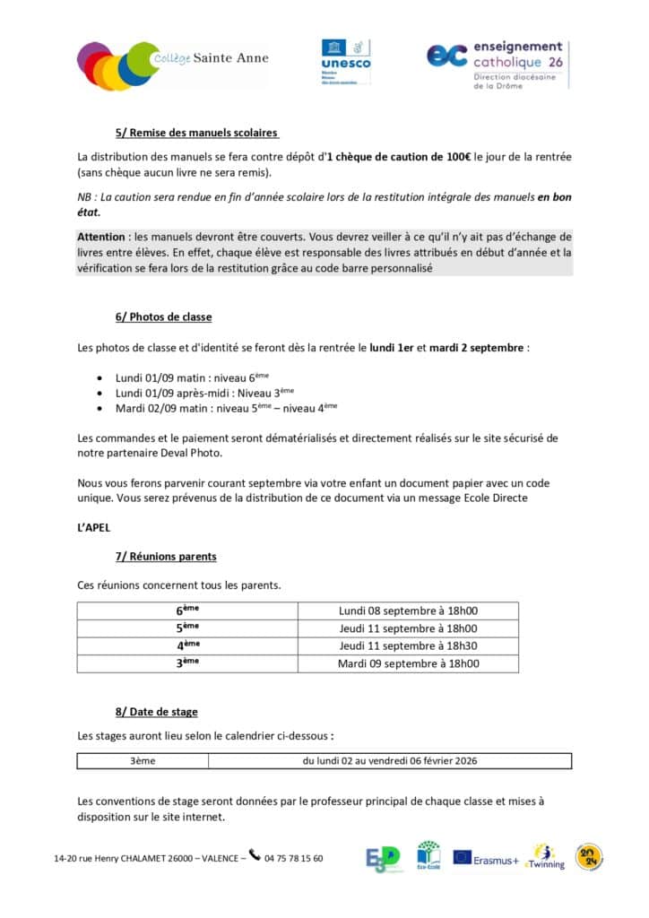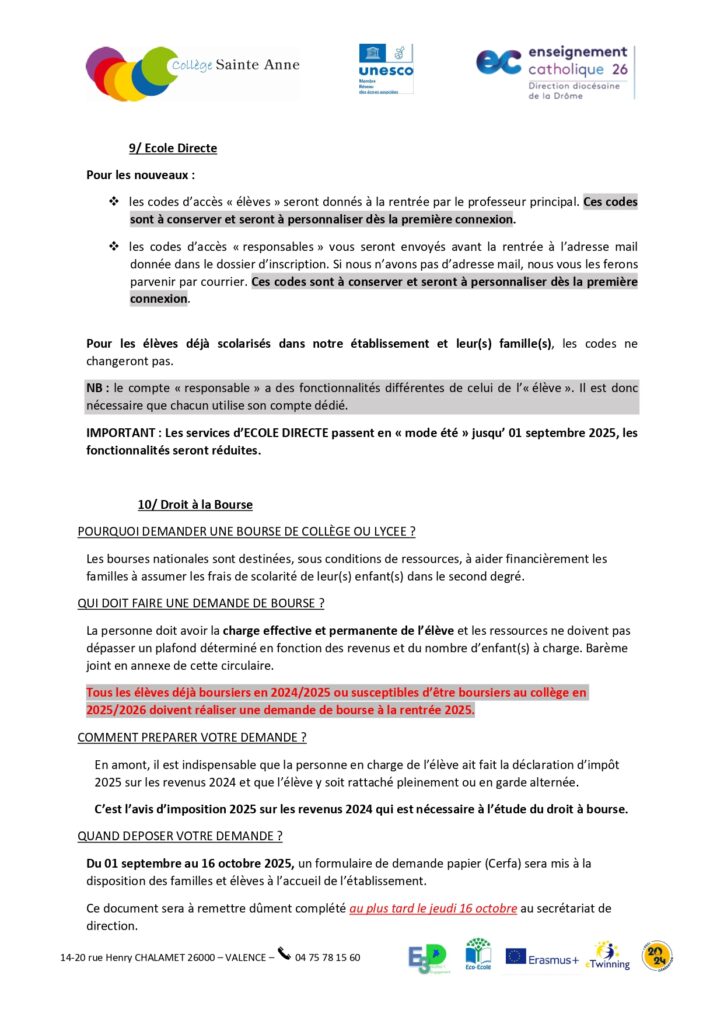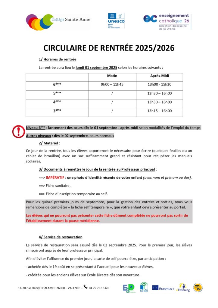 Circulaire de rentrée 2025/2026 Collège