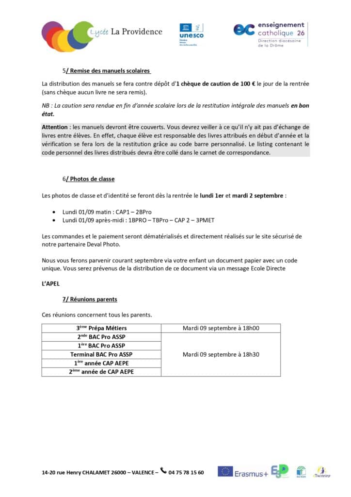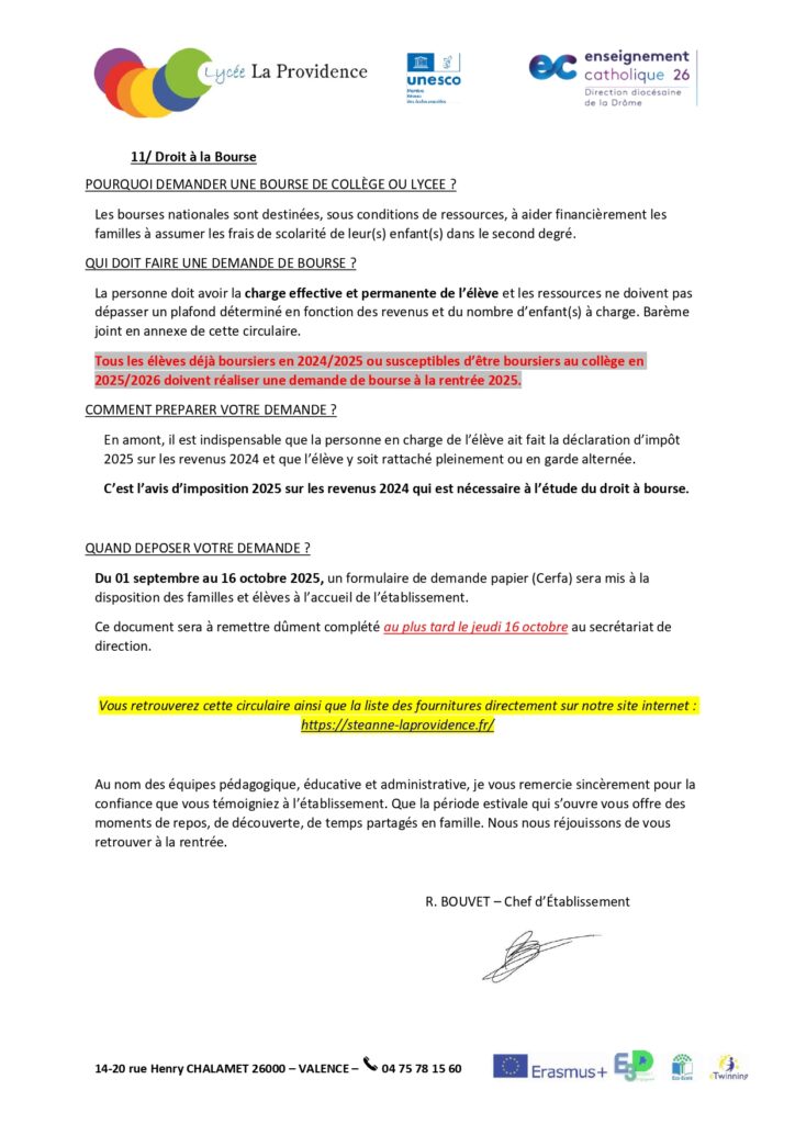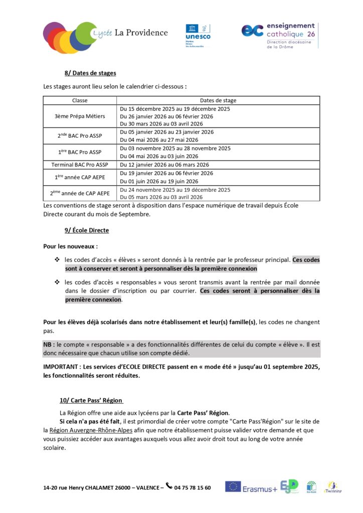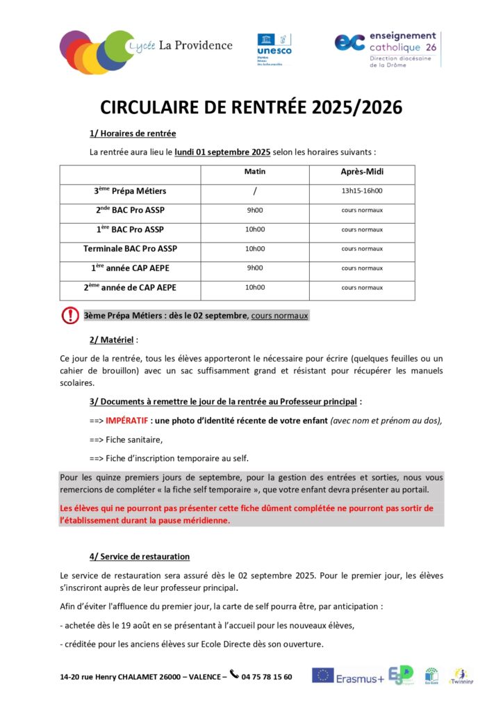 Circulaire de rentrée 2025/2026 – Lycée Pro