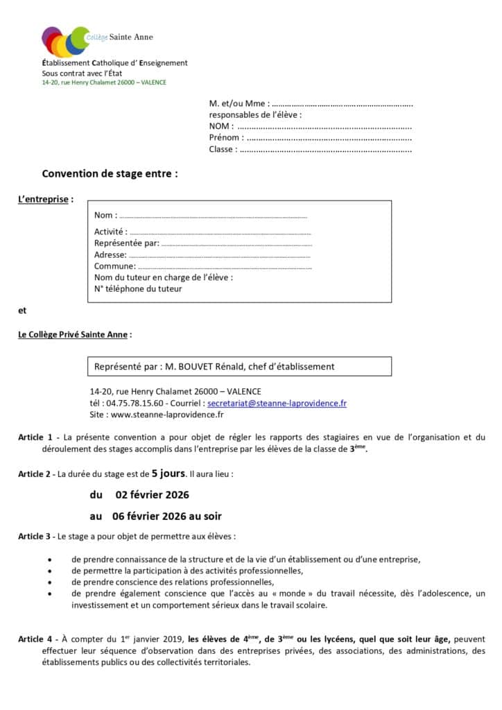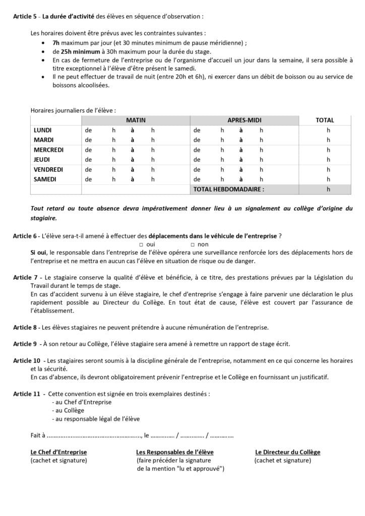 Convention de stage 3°