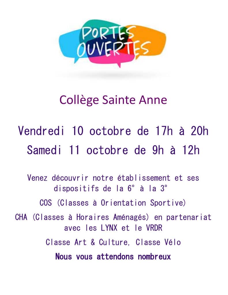 Journées Portes Ouvertes Collège 10 et 11 octobre 2025