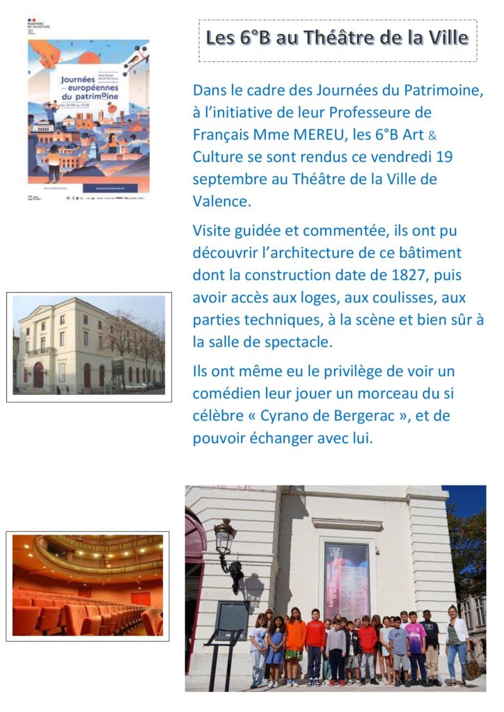 Visite du Théâtre de la Ville pour les 6°B Art et Culture